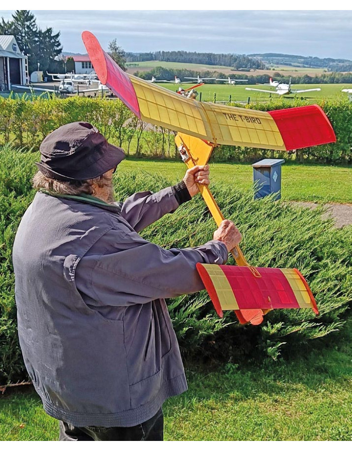 Co vedlo ke vzniku tohoto z dnešního pohledu málo obvyklého modelu spadajícího nejspíše do retro kategorií popsal v Pohádce o motoráčku známý modelář a hudebník Jan Spálený. Podle jeho pokynů jsem zpracoval plánek, který nyní předkládáme ostatním modelářům. Původní model zkonstruoval Američan Russ Hansen v roce 1956, jeho model měl rozpětí 910 mm a poháněl jej tehdy zbrusu nový motor Atwood Shriek .049 (0,316 cm3). Nepředpokládám, že by se z T-Birdů u nás stala nějaká masová kategorie, nicméně model může posloužit k odreagování a pohodovému létání. Případně s ním můžeme navštívit i nějakou soutěž kategorie F1C, jejím pravidlům odpovídá. Sice se výkonově asi moderním soutěžním brusům nebude rovnat, ale člověk nikdy neví…